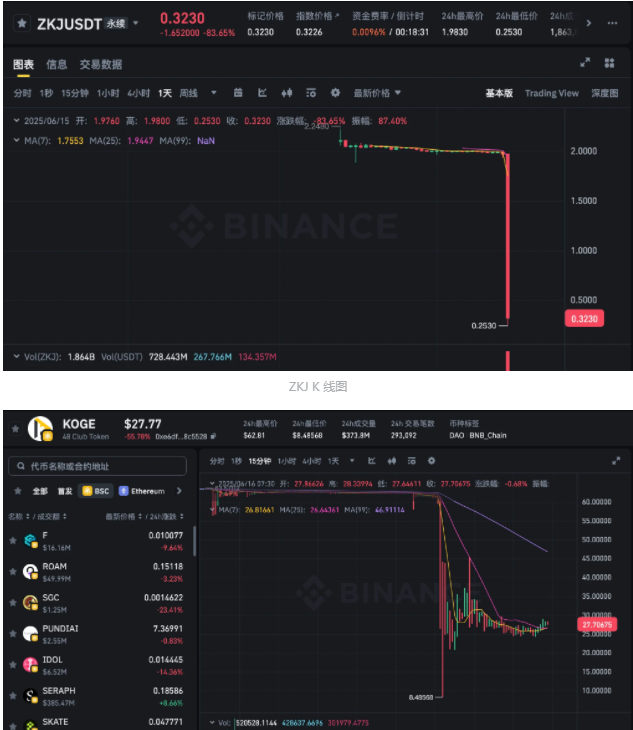 1、币安Alpha「连环收割局」,ZKJ与KOGE代币发生崩盘,ZKJ暴跌超80%
